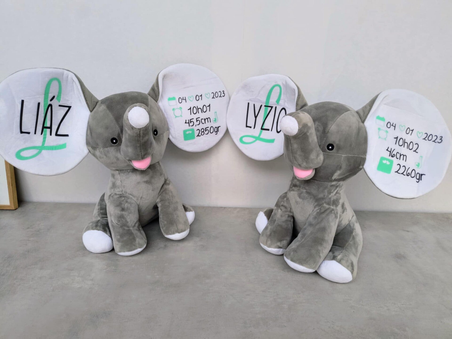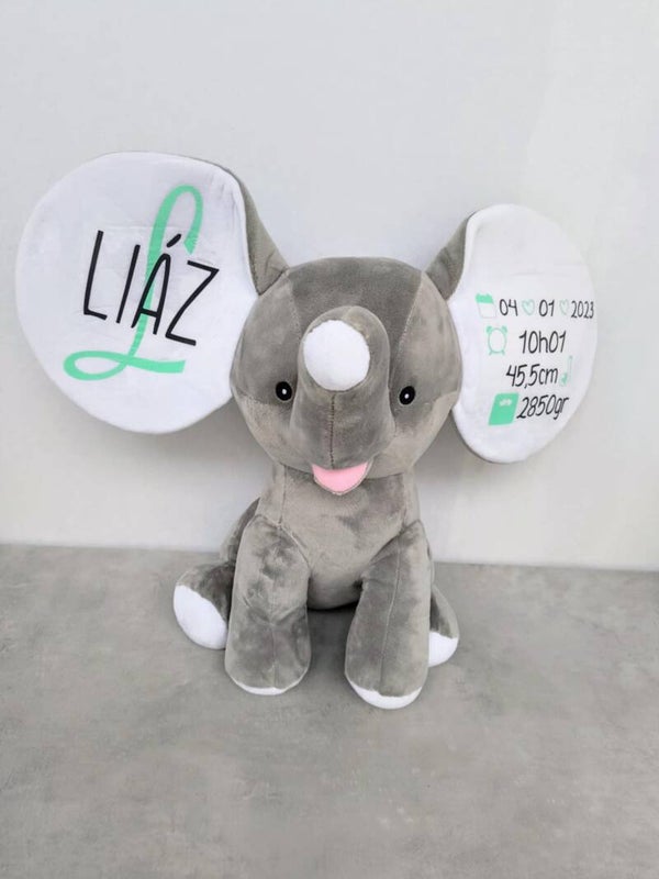 Geboortegegevens en naam in het zwart. Grote letter en tekeningen in accentkleur naar keuze.