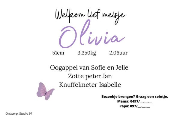 Hierbij kan u enkel de gegevens aanpassen. Wenst u een ander formaat of toch enkele aanpassingen doorgeven dan kan u dit verder op mail bespreken (info@studio97.net)